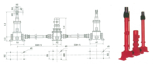 注:表中L1和L2项中的S为所需要行程mm,A3项中的A为推杆之间中心距的增加值,用户在订货时确定。如以上规格不能满足用户需要本厂可为用户特殊设计。